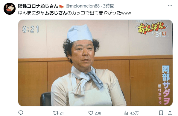 阿部さんはNHK『あさイチ』のプレミアムトークに生出演した際、「今日はあんぱんの日ということで、よろしくお願いします」と挨拶し、和やかな空気の中で草吉について振り返りました。番組内でも「ヤムおいちゃんからジャムおじさんへ…もう否定はできない」と語られ、共演者たちも笑顔で同意するなど、視聴者の間で“草吉=ジャムおじさん”説はさらに広まりを見せています。