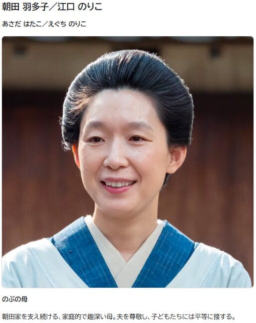 ドラマ『あんぱん』に登場する朝田羽多子(あさだ はたこ)は、江口のりこさんが演じるヒロイン・朝田のぶの母親です。その名前が「バタコさん」と非常に似ていることから、ネット上では「バタコさんのモデルではないか?」と話題になっています。