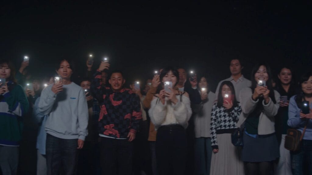 MVの開始から17秒あたり、スマホを掲げる群衆の中にご注目ください。