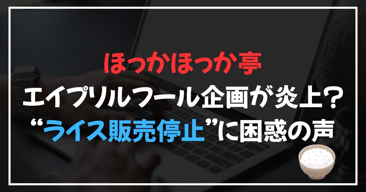 ほっかほっか亭の「ライス販売停止」エイプリルフール企画に対し、SNSでは「いや、これは笑えん」「ほっかほっか亭好きだったけど、嫌いになったわ」「嘘か本当かわからないネタはネタではないんよ…」と困惑や批判の声が相次いでいます。