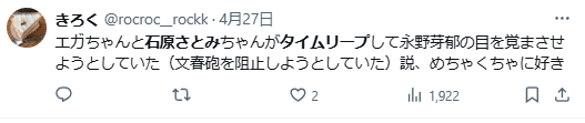 - 4月27日:SNSで「エガちゃんと石原さとみがタイムリープして永野芽郁を救おうとした説」が拡散され、関連投稿がバズる。
