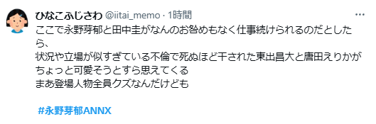 「田中圭に心配されて『大丈夫〜?』って言われてたら絶対自分から話広げてるはず」といったポストも見受けられますが、実際は永野さん自身が話を広げており、誤解を助長する表現となっています。