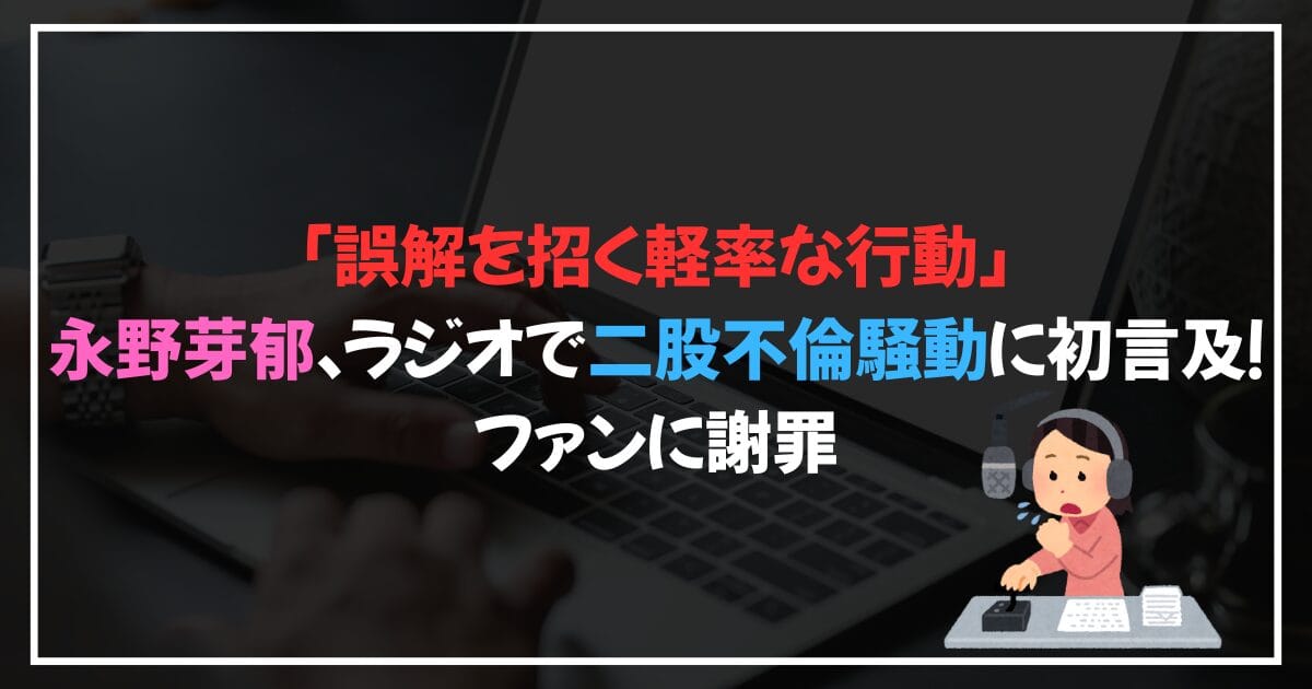 永野さんは「番組を始める前に私からお伝えしたいことがあります」と切り出し、「一部週刊誌の報道によりお騒がせしてしまっている件に関して、いつも応援してくださっているリスナーの皆様、ファンの皆様、そしてお仕事でご一緒させていただいている関係者の皆様にたくさんのご心配、ご迷惑をおかけしています。本当にごめんなさい」と謝罪。